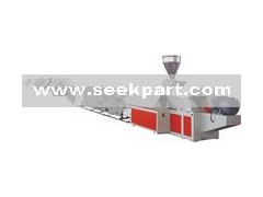 2.Which is compose of ZJF300 plastic powder loader , sjsz80/156 conical twin screw extruder ,mold ,vacuum calibration tank , cooling water tank, lmitated spray-code printer , three caterpillar haul-off , annular-type cutter , stacker .